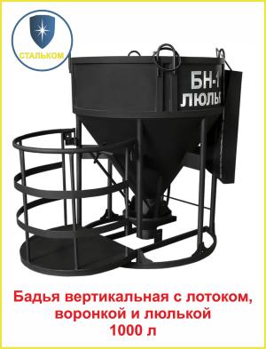 БН-1-3 Бадья вертикальная 1000л с лотоком, воронкой и люлькой