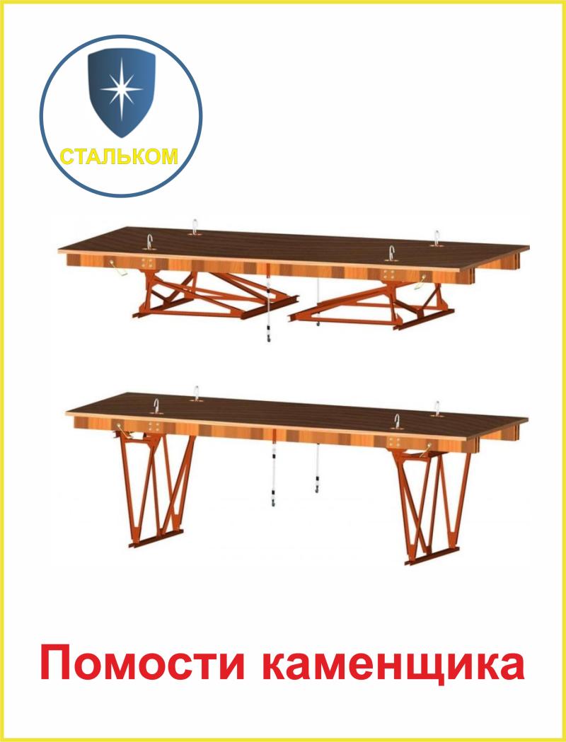 Инвентарно-шарнирные подмости каменщика – это оборудование, без которого не обходится строительство объекта, где используется каменная кладка. Грузоподъемность 5280 килограмм, что позволяет выдерживать несколько человек и материал одновременно. Размер 5500*2400мм. Для удобства в работе они имеют два положения по высоте — 0,9 и 1,8 метра. За счет массивных опор достигается максимум надежности и долговечности.В ходе эксплуатации строительных помостов необходимо соблюдать правила безопасности при работе на высоте.