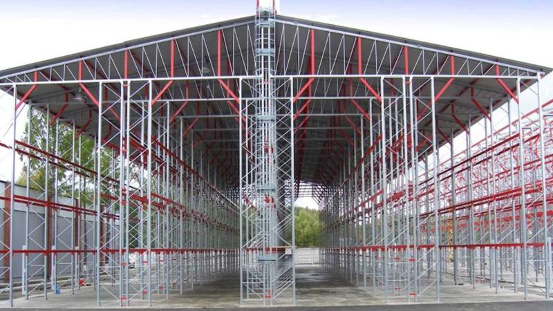 Быстровозводимые склады представляют собой конструкцию, где несущими элементами являются сами стеллажи, за счет чего достигается существенная экономия на каркасе здания, а также максимально использовать площадь и высоту склада.Быстровозводимые склады также имеют ряд других преимуществ:
